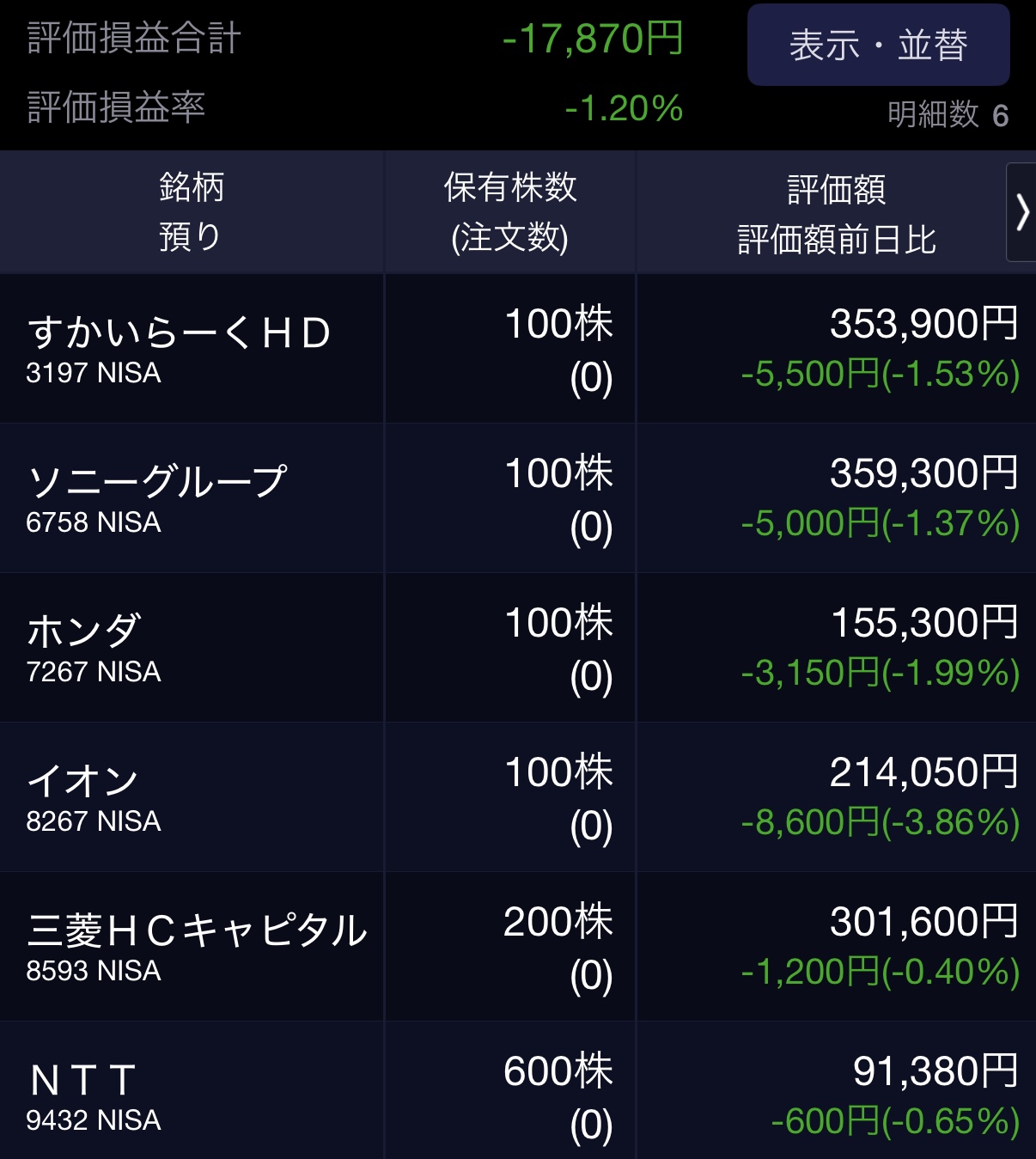 私のポートフォリオ画像を見ていただければわかる通り、すかいらーくは買ったばかりで評価額がマイナスになる日もあります(笑)。 でも、まったく気にしていません。売るつもりがないからです。